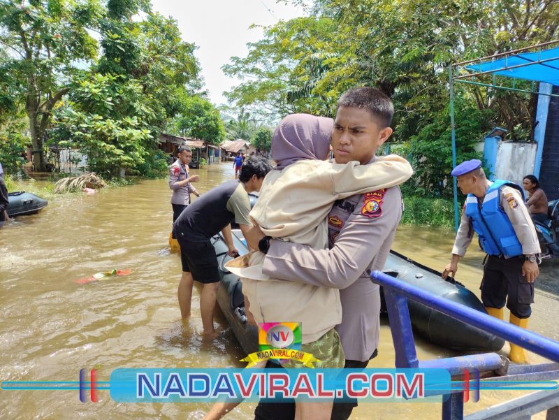 Dalam upaya penyelamatan ini, personel Ditpolairud Polda Riau turun langsung ke lokasi untuk membantu warga terdampak, bahkan menggendong mereka ke posko pengungsian.