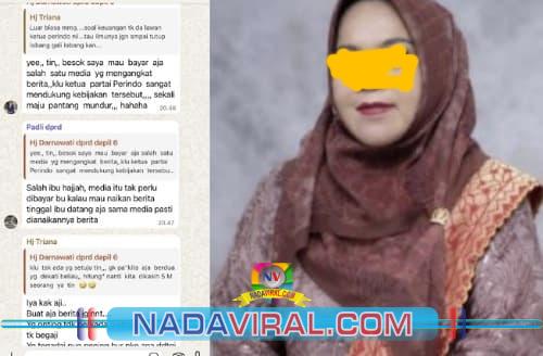 Dalam percakapan tersebut, Hj. D secara implisit menawarkan pembayaran kepada Media untuk mempromosikan dukungan terhadap kebijakan Pemerintah daerah Inhil.
