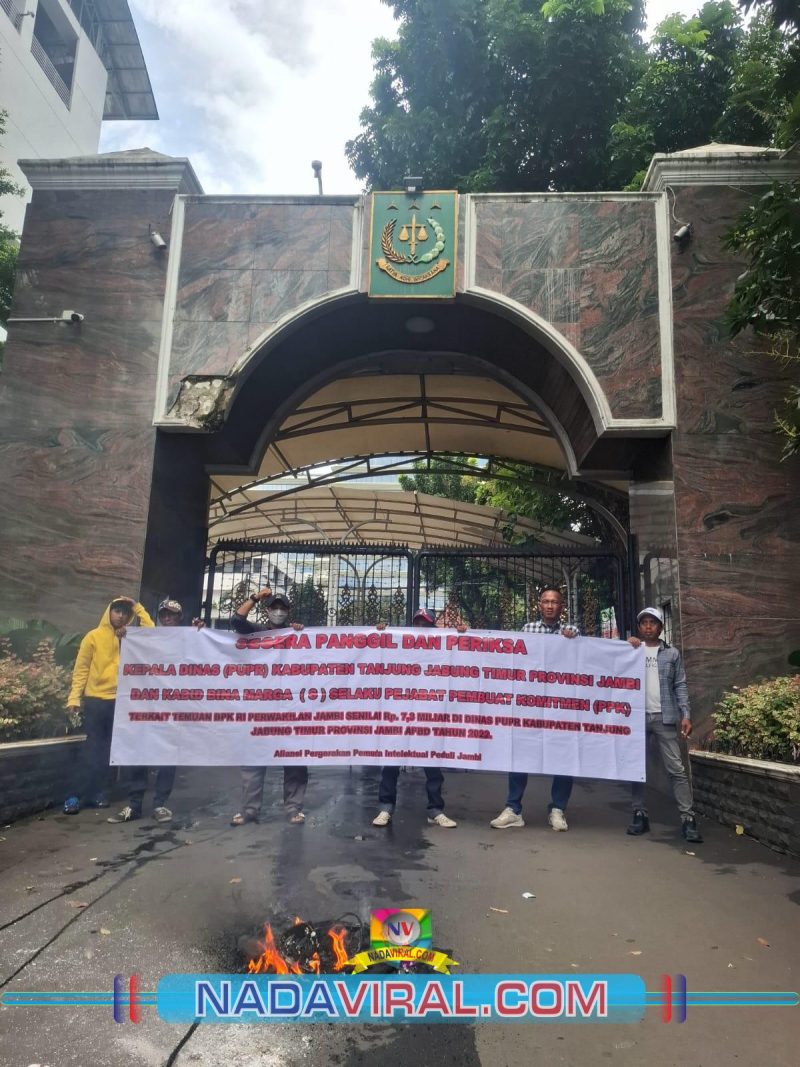 Jakarta, (NV) — Pemuda dan mahasiswa jambi dijakarta kembali mendatangi Kejaksaan Agung RI dalam menyampaikan aspirasi terkait temuan BPK RI perwakilan jambi senilai Rp.7,3 Miliar di Dinas PUPR Kabupaten Tanjung Jabung Timur Provinsi Jambi APBD Tahun 2022 yang belum dikembalikan ke kas negara.