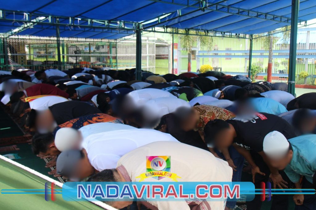 PEKANBARU, (NVC) — Ratusan Warga Binaan Pemasyarakatan (WBP) Lembaga Pemasyarakatan (Lapas) Kelas IIA Pekanbaru serta para Petugas yang beragama Islam tampak khusyu mengikuti Sholat Jumat berjamaah di Masjid At-Taubah, Jumat (10/1/2025).
