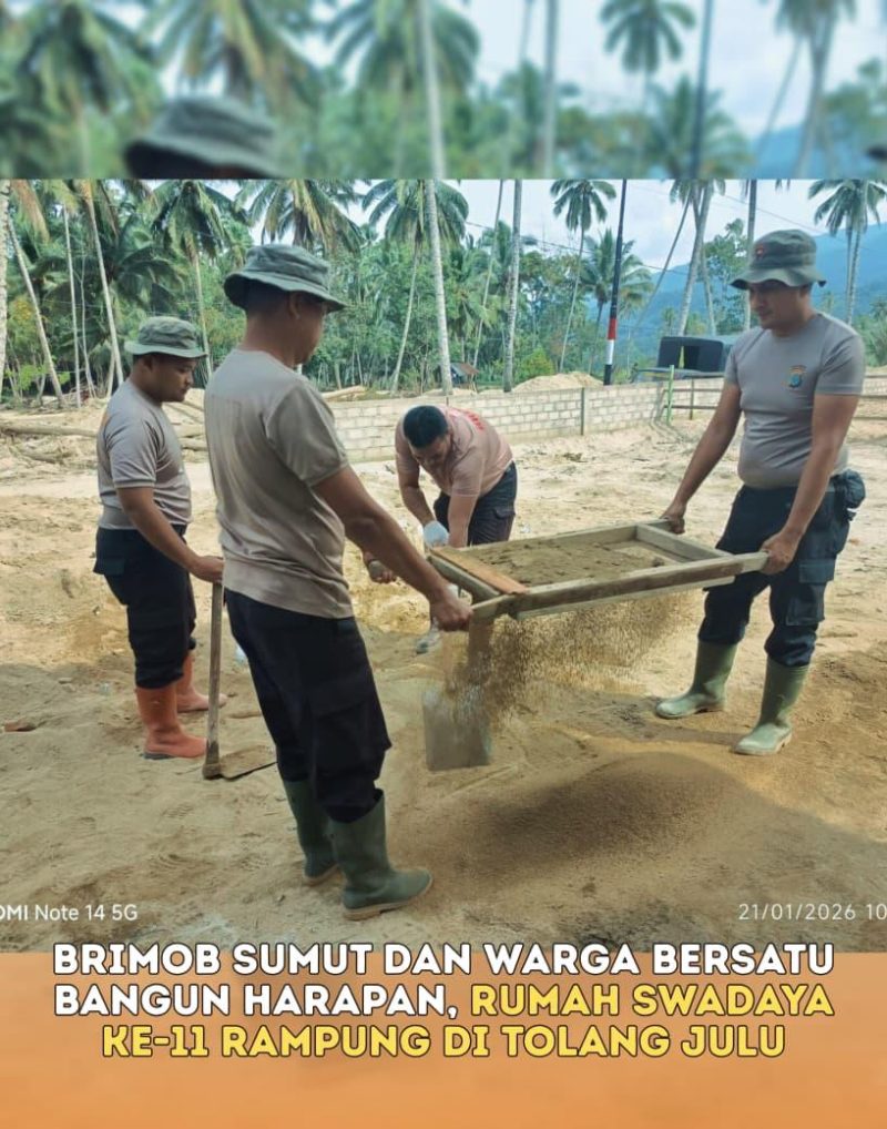 Pada Sabtu, 24 Januari 2026, di bawah cuaca yang cerah, personel Brimob bersama masyarakat setempat kembali turun langsung membantu pembangunan rumah swadaya hunian sementara bagi warga terdampak bencana. Kegiatan ini merupakan bentuk nyata sinergi antara aparat dan masyarakat dalam membangun kembali kehidupan yang lebih aman dan layak.