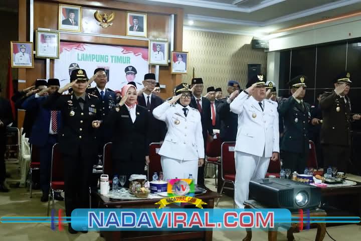 Suasana penuh rasa nasionalisme terasa saat para pejabat daerah tersebut berkumpul di Aula Utama Sekretariat Daerah Lampung Timur.