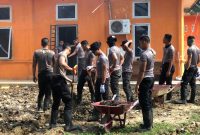 Tapanuli Selatan — Personel Batalyon C Satuan Brimob Polda Sumatera Utara bersama masyarakat setempat melaksanakan pembangunan rumah swadaya bagi warga terdampak banjir di Desa…
