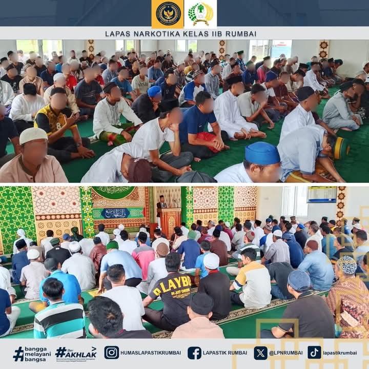 Kegiatan Sholat Jum’at ini menjadi bagian dari program pembinaan kepribadian di Lapas Narkotika Rumbai, yang bertujuan membentuk karakter warga binaan agar memiliki bekal spiritual yang kuat sebagai landasan dalam menjalani kehidupan yang lebih baik di masa mendatang. (*/Red)