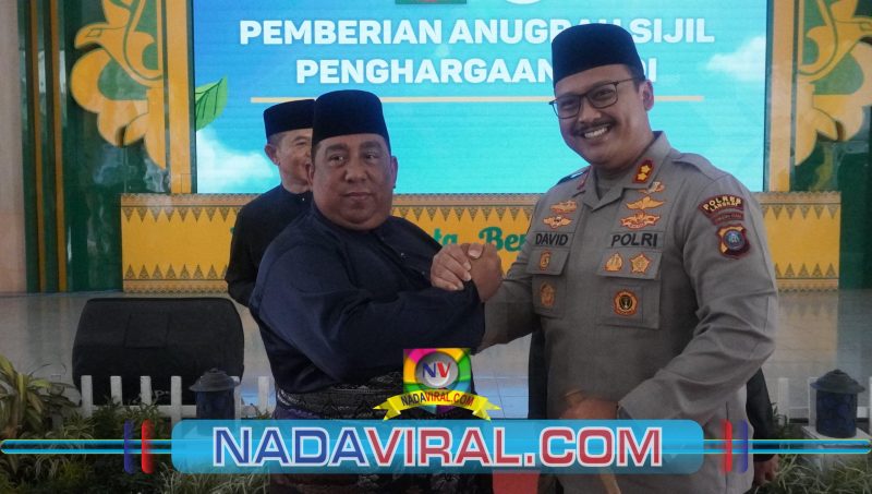 Langkat, (NV) – Kapolres Langkat, AKBP David Triyo Prasojo, SH, SIK, MSi, menerima penghargaan sebagai Tokoh Inspiratif Dunia Melayu Dunia Islam (DMDI) Kabupaten Langkat dalam acara Pelantikan DMDI Kab. Langkat bertema Dakwah Serantau Antar Bangsa, yang digelar pada Kamis (7/8/2025) di Aula Jantera Malay, Rumah Dinas Bupati Langkat.