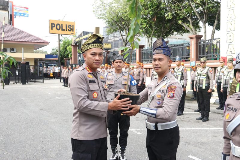 PEKANBARU – Kapolresta Pekanbaru memimpin langsung Apel Launching Penggunaan Tanjak dan Selempang bagi Anggota Polri bersama Lembaga Adat Melayu Riau (LAM), yang dilaksanakan pada Jumat (20/02/2026) pukul 08.00 WIB di halaman depan Mapolresta Pekanbaru.