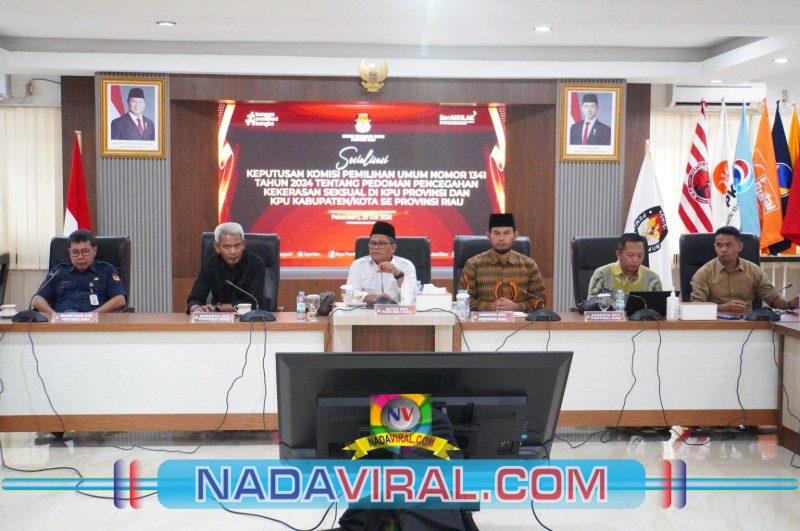Pekanbaru, (NV) — Komisi Pemilihan Umum (KPU) Provinsi Riau menyelenggarakan kegiatan Sosialisasi Keputusan Komisi Pemilihan Umum Nomor 1341 Tahun 2024 tentang Pedoman Pencegahan Kekerasan Seksual di Komisi Pemilihan Umum, Komisi Pemilihan Umum Provinsi, dan Komisi Pemilihan Umum Kabupaten/Kota pada hari ini, Selasa, 29 Juli 2025.