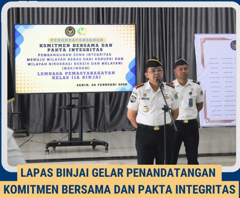 BINJAI — Lembaga Pemasyarakatan (Lapas) Kelas IIA Binjai menggelar Penandatanganan Komitmen Bersama dan Pakta Integritas Tahun 2026 yang diikuti oleh seluruh pejabat struktural dan pegawai,