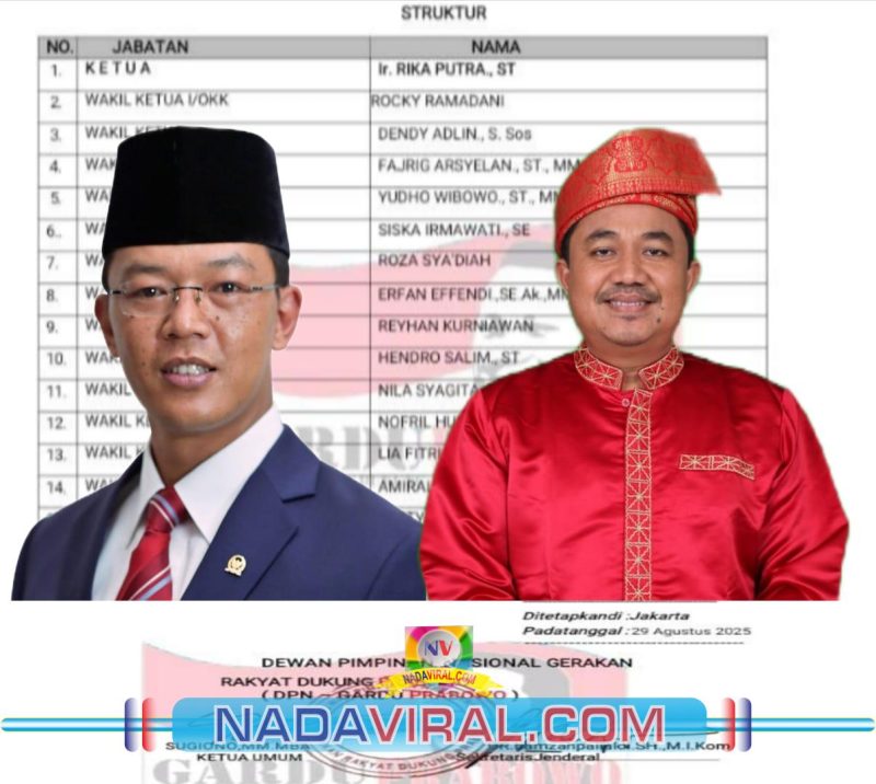 PEKANBARU — Menjelang akhir tahun 2025, Dewan Pimpinan Nasional (DPN) Gardu Prabowo resmi menunjuk Rika Putra sebagai Ketua Dewan Pimpinan Daerah (DPD) Gardu Prabowo Provinsi Riau, Sadrianto Sekretaris, Sujadi Bendahara dan Rocky Ramadani Sebagai Ketua Organisasi, Kaderisasi dan Keanggotaan (OKK).