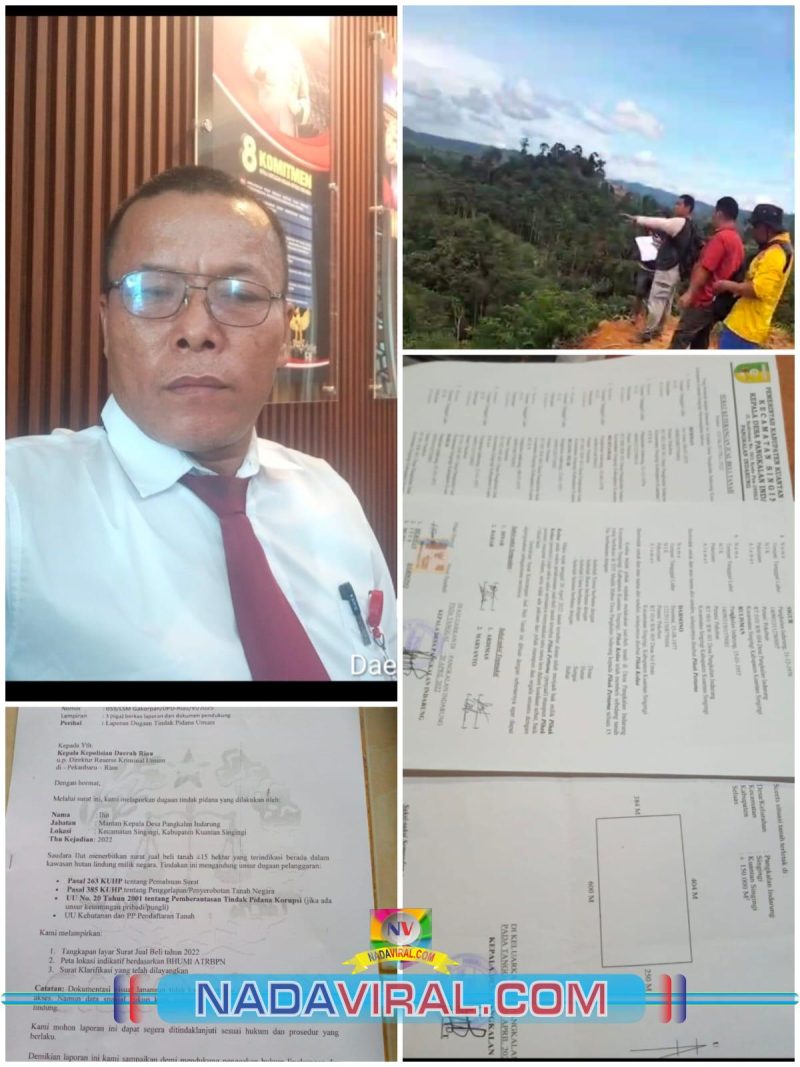 Lanjutnya, banyak Mafia Tanah saat ini yang masih bebas melakukan praktek jual beli hutan kawasan di Provinsi Riau. Salah satunya di Desa Pangkalan Indarung, Kecamatan Singingi, Kabupaten Kuansing, Riau.