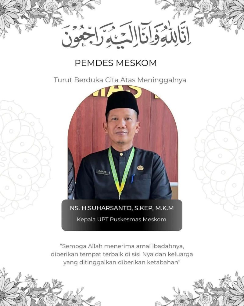 Pemerintah Desa Meskom Sampaikan Duka Mendalam atas Wafatnya Kepala UPT Pukesmas Meskom NS.H.Suharsanto