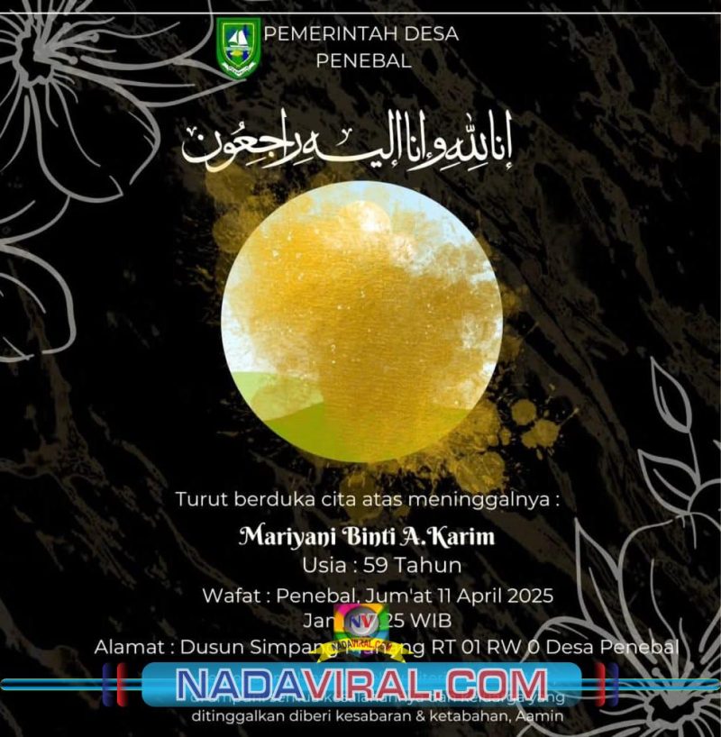 BENGKALIS, (NV) — Kepala Desa Penebal,Muhamad Saimin ucapkan Innalillahi wainnailaihirojiun, Kabar duka datang dari Ibuk Mariyani Binti A.Karim warga Dusun Simpang Mahang RT 01, RW 01 Desa Penebal kecamatan Bengkalis kabupaten Bengkalis,telah berpulang ke Rahmatullah pada hari ini, Sabtu, 12 April 2025.