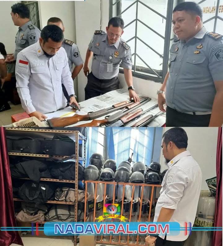 Tim melakukan pemeriksaan terhadap kondisi serta jumlah senjata api dan perlengkapan pengamanan di gudang senjata Rutan Kelas I Medan.
