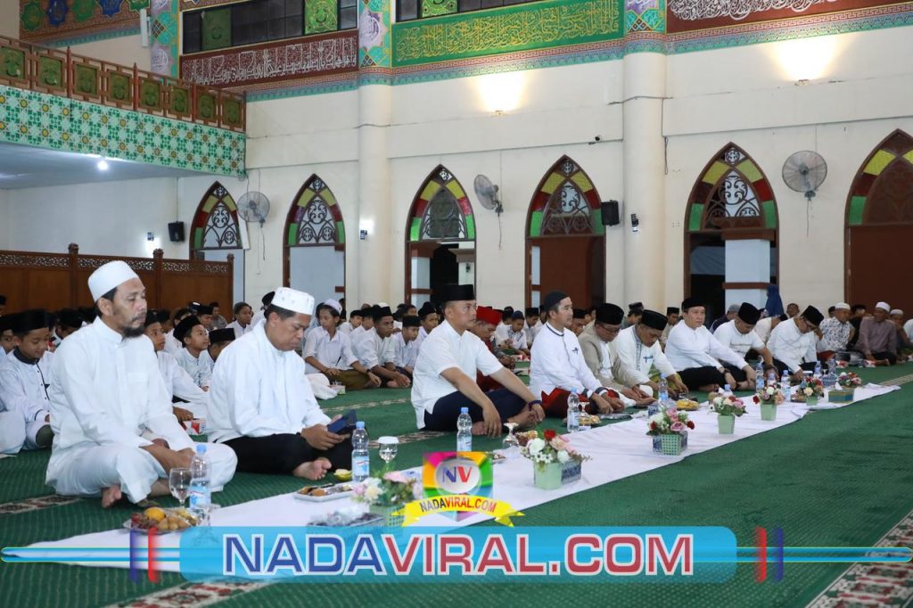 SIAK, (NV) — Ratusan jamaah dari berbagai kalangan, termasuk para santri, memenuhi Masjid Sultan Syarif Hasyim Islamic Center, Siak, pada Minggu (16/3/2025) malam.