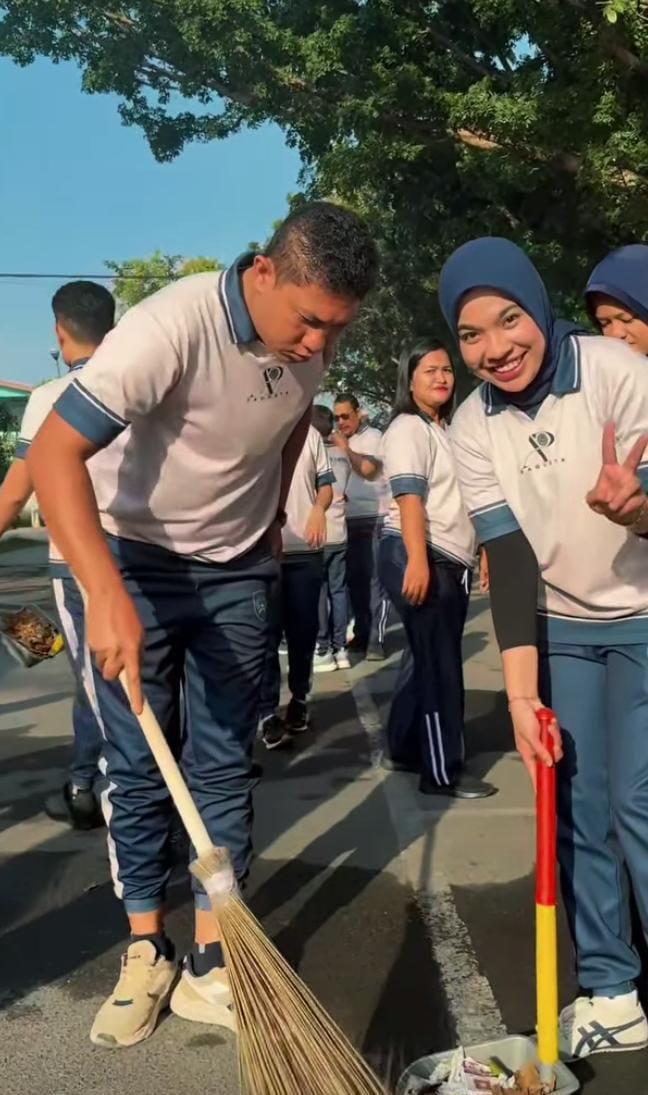 Usai apel, kegiatan dilanjutkan dengan gotong royong pembersihan halaman depan Rutan Kelas I Medan. Seluruh pegawai berpartisipasi aktif dengan memanfaatkan sarana dan prasarana kebersihan seperti sapu lidi, sapu ijuk, pengki, dan gerobak sorong, guna menciptakan lingkungan rutan yang bersih, rapi, dan nyaman. Kegiatan ini juga diikuti oleh para anak magang yang tengah melaksanakan praktik kerja di Rutan Kelas I Medan, sebagai bentuk pembelajaran langsung mengenai kedisiplinan, tanggung jawab, serta kepedulian terhadap kebersihan dan lingkungan kerja.