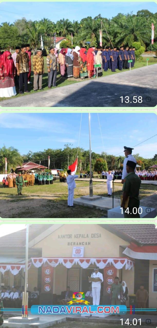 Rangkaian acara berlangsung dengan tertib, dimulai dari laporan komandan upacara, detik-detik proklamasi, pembacaan teks proklamasi, mengheningkan cipta, doa bersama, hingga pengibaran bendera Merah Putih yang diiringi lagu kebangsaan Indonesia Raya. Setelah itu, acara dilanjutkan dengan aubade oleh para Putra/Putri terbaik Desa Berancah,