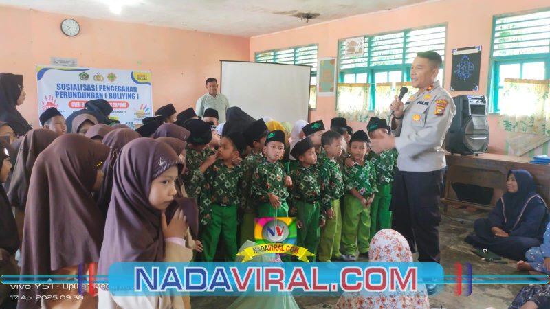 KAMPAR, (NV) — Guna menekan angka perundungan (bullying) di lingkungan pendidikan Sekolah Dasar dan Madrasah Ibtidaiyah, Kepolisian Sektor (Polsek) Tapung, Polres Kampar melaksanakan Sosialisasi Pencegahan Perundungan dan Bullying di Sekolah M’I Nurul Indrasakti, kegiatan ini merupakan bagian dari program “Police Goes to School” yang bertujuan memberikan edukasi langsung kepada siswa mengenai Pencegahan Perundungan dan Bullying, Kamis (17/04/2025) pukul 09:00 Wib.