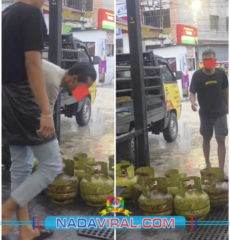 Warga yang sedang menikmati menu di Warung (PK) tersebut, secara spontan terkejut melihat sebuah Mobil Pick Up diduga Driver Maxim menurunkan sejumlah Tabung Gas LPG Melon 3Kg warna hijau ke Warung tersebut.