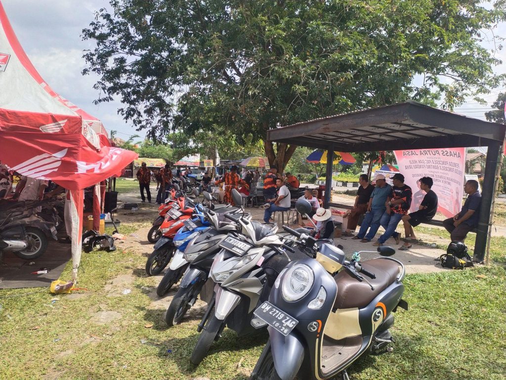 Kampar, RIAU — Perusahaan AHASS PUTRA JASA bekerja sama dengan PAC Pemuda Panca Sila Siak Hulu dan Pemuda Pancasila Ranting Pandau Jaya memberi kesempatan kepada warga Pandau Permai, Siak Hulu dan sekitarnya (Pekanbaru) untuk mendapatkan Service dan ganti Oli secara gratis.