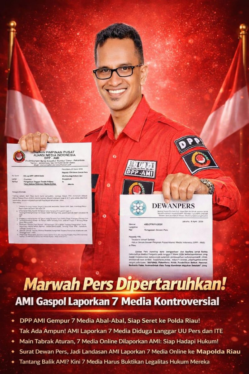 PEKANBARU — Dewan Pimpinan Pusat Aliansi Media Indonesia (DPP AMI) segera laporkan 7 (tujuh) media online ke Mapolda Riau atas dugaan pelanggaran serius Undang-Undang Pers hingga UU ITE.