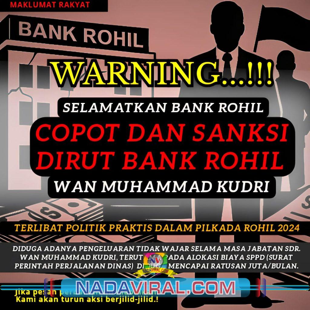 Bagansiapiapi, (NV) — Selebaran (flyer Digital) bertuliskan Warning!!! Selamatkan Bank Rohil. Copot dan Sangsi Dirut Bank Rohil makin mencuat ke publik.