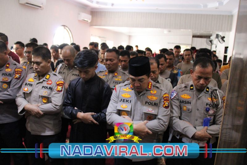 Pekanbaru, (NV) – Dalam suasana penuh haru dan khidmat, Kapolresta Pekanbaru, Kombes Pol Jeki Rahmat Mustika, S.I.K, memimpin pelaksanaan Sholat Jenazah Ghaib untuk mendoakan tiga anggota Polri terbaik yang gugur dalam tugas. Kegiatan ini berlangsung pada Selasa, 18 Maret 2025, pukul 12.30 WIB, di Masjid Asy-Syuro Polresta Pekanbaru.