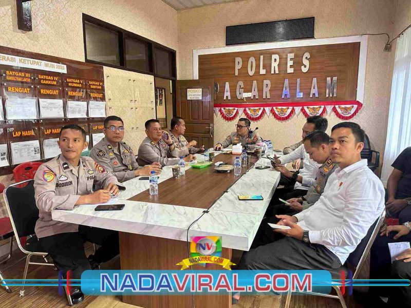 Pagar Alam, (NVC) — Kapolres Pagar Alam, AKBP Januar Kencana Setia Persada, SIK bersama Waka Polres, para pejabat utama dan Brigadir mengikuti zoom meeting dari Polda Sumatera Selatan, Senin (11/8/2025) pukul 14.00 WIB. Kegiatan berlangsung di Aula samping Sium Polres Pagar Alam.