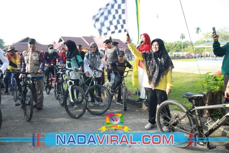 Usai membuka acara, Bupati Afni langsung bergabung bersama peserta. Dengan penuh semangat, ia ikut mengayuh sepeda bersama anak-anak, remaja, hingga orang tua menyusuri rute yang dimulai dari halaman Kantor Camat, melewati persawahan, lalu kembali ke garis finis di kantor camat.