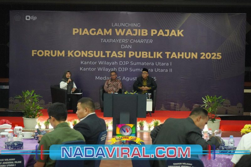 Medan, (NVC) — Direktorat Jenderal Pajak (DJP) memperkuat komitmen transparansi dan akuntabilitas melalui peluncuran Taxpayers’ Charter atau Piagam Wajib Pajak. Acara ini dikemas dalam pelaksanaan Forum Konsultasi Publik (FKP) yang digelar bersama antara Kantor Wilayah (Kanwil) DJP Sumatera Utara I dan Sumatera Utara II di Aula Istana Maimun, Gedung Kanwil DJP Sumatera Utara I, Medan, Senin (25/8/2025).