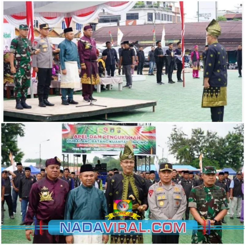 Teluk Kuantan, (NVC) — Gubri didampingi oleh Kapolda Riau Irjen. Pol. Dr. Herry Heryawan, S.I.K., M.H., M.Hum, Pangdam XIX Tuanku Tambusai Mayjen. TNI Dr. Agus Hadi Waluyo, S.A.P., M.M., CHRMP dan Bupati Kuantan Singingi Datuk Seri Setia Amanah Dr. H. Suhardiman Amby, AK., M.M Datuk Panglimo Dalam, pada Apel dan Pengukuhan yang dilaksanakan hari Minggu 12 Oktober 2025 pukul 13.00 WIB bertempat di Lapangan Taman Jalur Tepian Narosa Teluk Kuantan yang bersempena Hari Ulang Tahun ke-26 Kabupaten Kuantan Singingi.