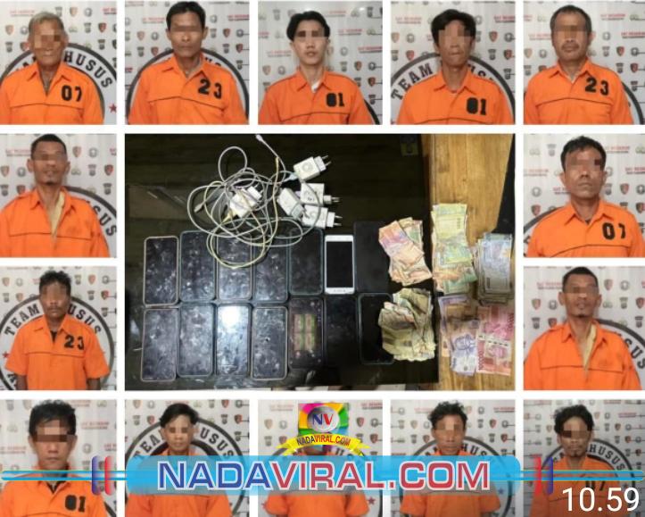 Sebanyak 14 tersangka diringkus, terdiri dari satu orang yang berperan sebagai agen dan 13 lainnya sebagai pemain.