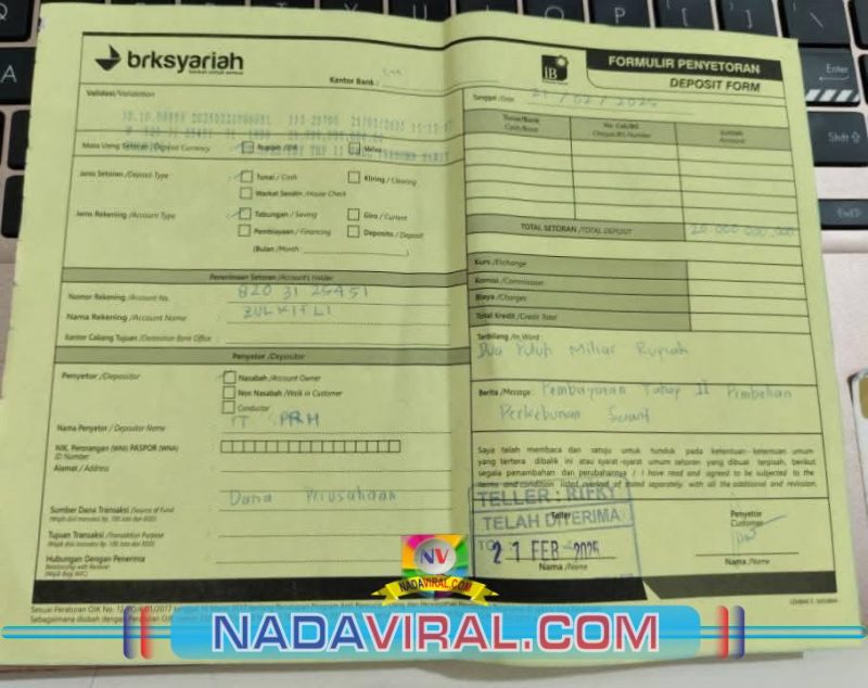 Diketahui seperti berita viral disejumlah Media On-Line baru-baru ini, bahwa tahap Pertama, pada 6 Januari 2025, ZK menerima pembayaran sebesar Rp 10 miliar, sebagaimana tercatat dalam Kwitansi yang ditanda tangani oleh Direktur Utama BUMD Rohil, Rahman, SE, disetujui oleh Direktur Keuangan, Mahendra Fakhri, SE, dan bayarkan secara lunas oleh Bendahara BUMD SPRH, Sundari, SE.