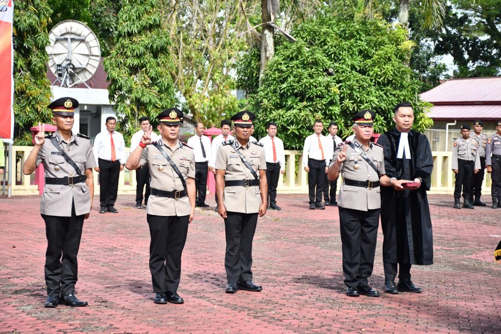 Upacara berlangsung dengan tertib dan khidmat sebagai bagian dari dinamika organisasi dalam rangka pembinaan karier dan peningkatan kinerja personel Polri.