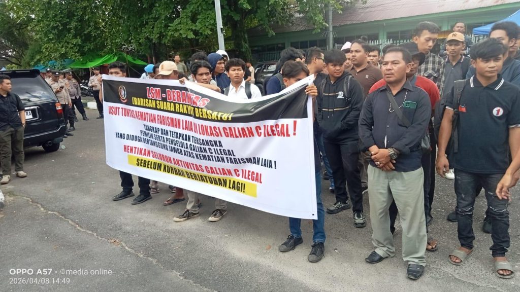 PEKANBARU – Puluhan massa dari Dewan Pimpinan Pusat Lembaga Swadaya Masyarakat Barisan Suara Rakyat Bersatu (DPP LSM-BERANTAS) menggelar aksi unjuk rasa di Mapolda Riau, Rabu (8/4/2026).