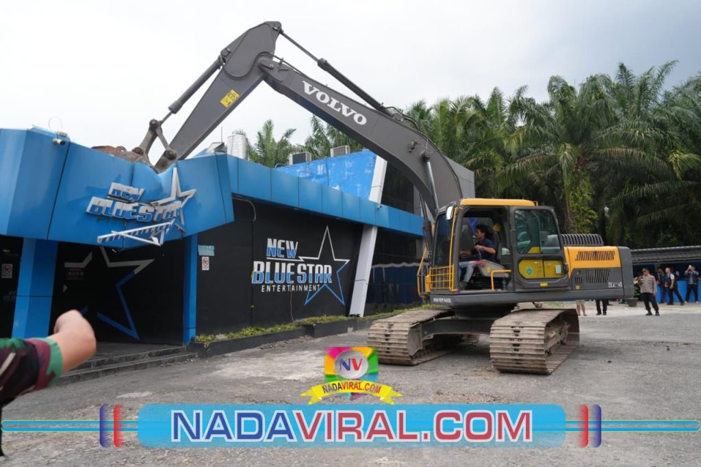 Sebelum alat berat mulai bekerja, Kasatpol PP Kabupaten Langkat membacakan putusan resmi bahwa New Blue Star tidak memiliki Izin Mendirikan Bangunan (IMB), Tanda Daftar Usaha Pariwisata (TDUP), dan Persetujuan Bangunan Gedung (PBG). Selain itu, lokasi ini telah lama menjadi sorotan karena diduga kuat menjadi pusat peredaran narkotika.