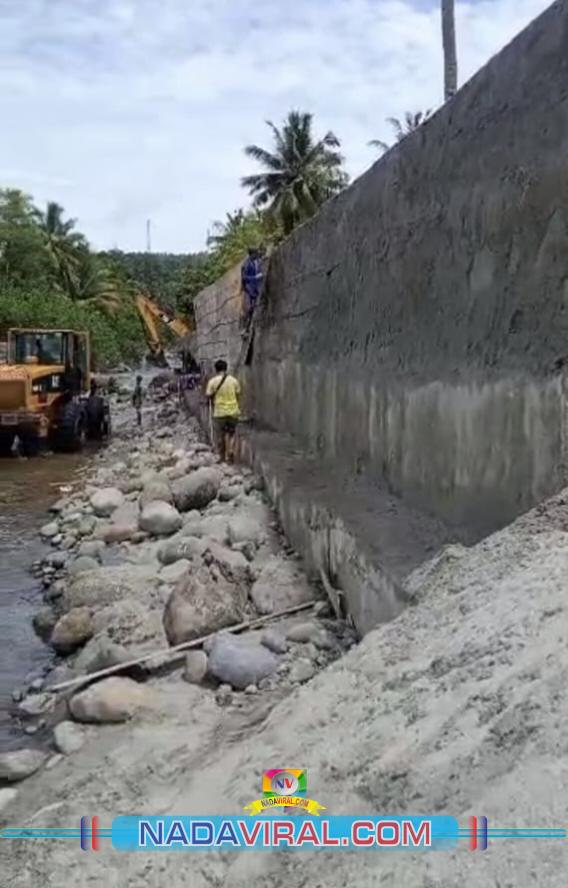 PESISIR BARAT, (VC) — Poyek penahan tebing Sungai Way Melesom, Pekon Bambang, Kecamatan Lemong, Kabupaten Pesisir Barat, Provinsi Lampung diduga dikerjakan asal jadi sehingga terbawa arus Sungai. Kondisi ini diduga ada indikasi Korupsi. (28/02/25)