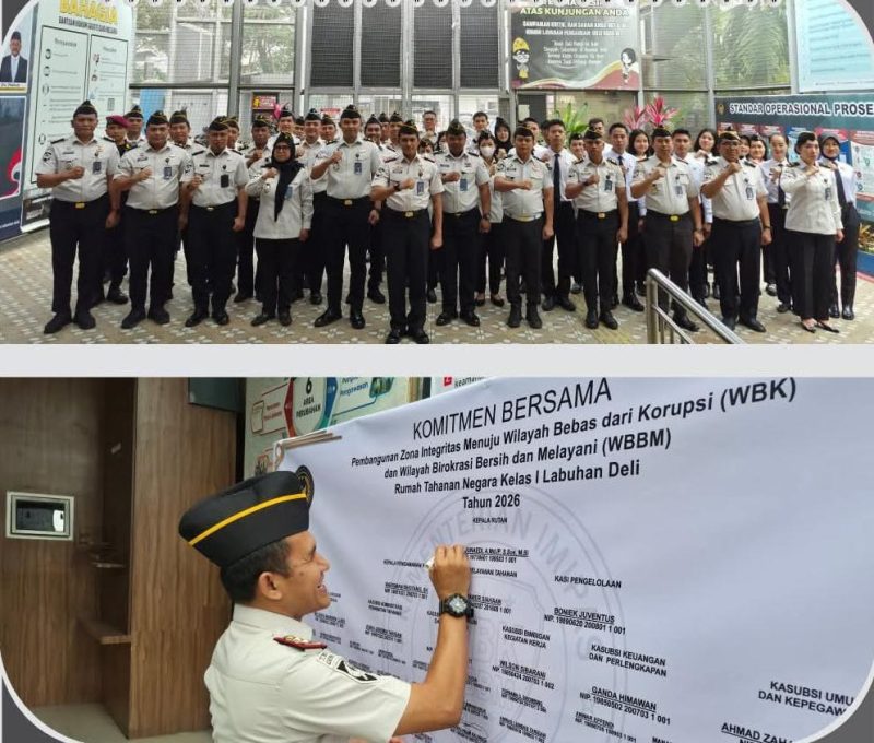 Labuhan Deli — Rumah Tahanan Negara (Rutan) Kelas I Labuhan Deli menggelar apel pencanangan dan penandatanganan komitmen Zona Integritas menuju Wilayah Bebas dari Korupsi (WBK) dan Wilayah Birokrasi Bersih dan Melayani (WBBM) tahun 2026. Rabu, (04/02/2026).