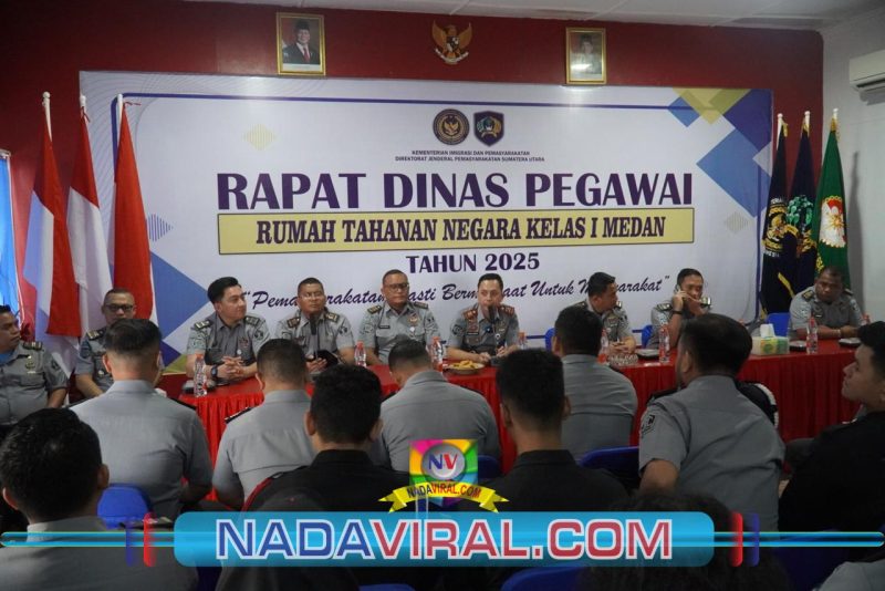 Bertempat di Aula Muladi, Rapat dinas dipimpin langsung oleh Kepala Rutan Kelas I Medan, Andi Surya. Dalam arahannya Karutan menyampaikan beberapa hal penting yang harus menjadi perhatian dan tindak lanjut seluruh jajaran seperti Pelaksanaan Penggeledahan Rutin, Penempatan Wbp Berdasarkan Tingkat Resiko, Akreditasi Klinik Rutan, Menjaga Kebersihan Dapur dan Alat Masak, Pembinaan Kepribadian dan Keagamaan oleh Subsi BHPT, Serta Ketahanan Pangan dan Inovasi Pembinaan.